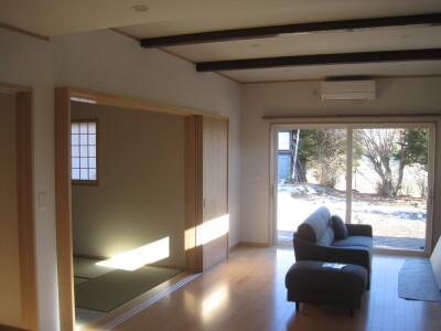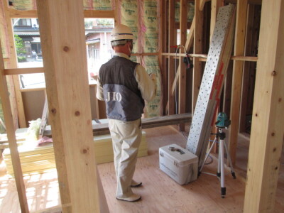 4月某日建て方を行いました。 地元の木材を使用しました、久しぶりの大工さんによる手刻みによる加工です。 |