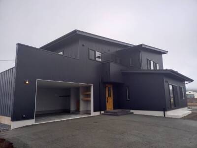 完成しました。 建物はビルトインガレージタイプです。 全体的に黒をベースに落ち着いた雰囲気でイメージ通りに完成しました。 |