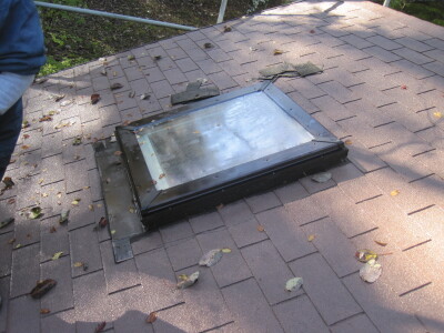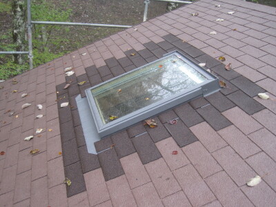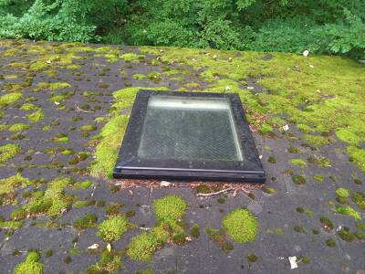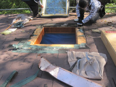 トップライト廻りのコケの影響で雨漏れの為交換工事 |