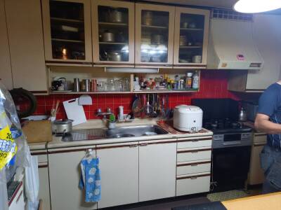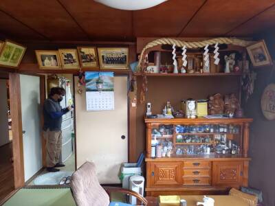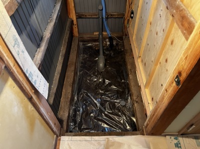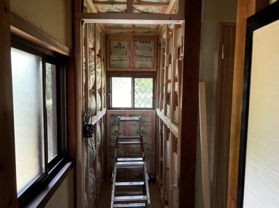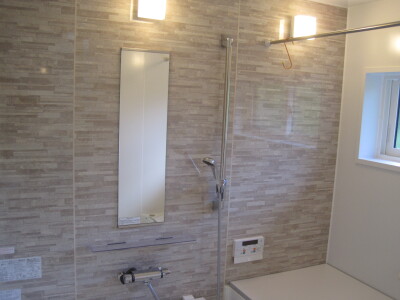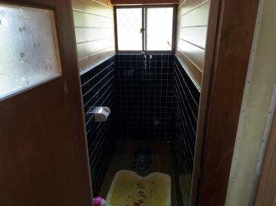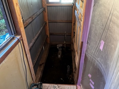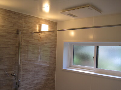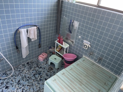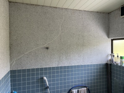 浴室改修前、既存の壁はタイルと左官壁で解体が大変でした。 |