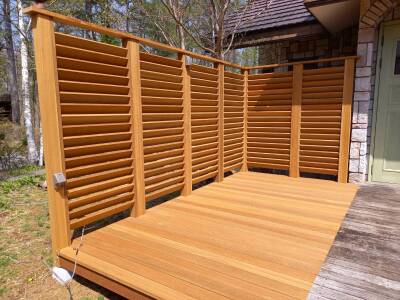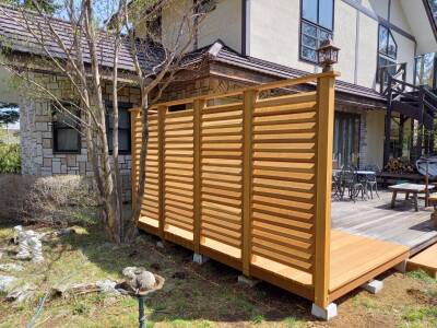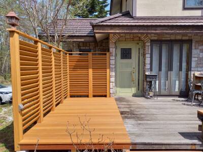 デッキ増設及びルーバー目隠し工事を行いました。 材質は腐りに強い材セランガンバツ材で施工しました。