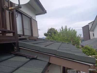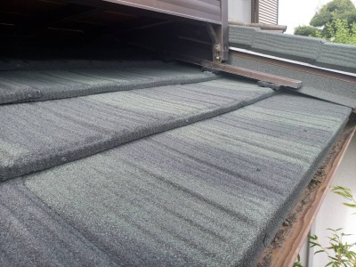 築年数もたち屋根の老朽化を考え屋根のリフォームを施工する事になりました。 施工方法は既存屋根の上からカバー工法による施工です。 カバー工法に使用する材料は、お客様希望によりメンテナンスフリーの材料 ハイブリッド屋根材(デクラ屋根システム)で施工しました。 |