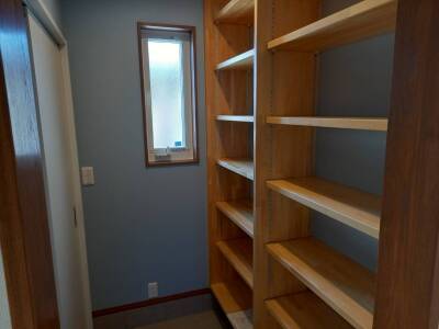 | シューズクローゼットも玄関横入りそのままホールに入る動線で棚も天井まで造作しました。 |