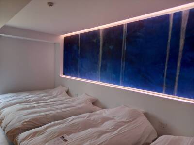 | 壁一面に絵を設置してライトを照らし周りは白に仕上げました。 |